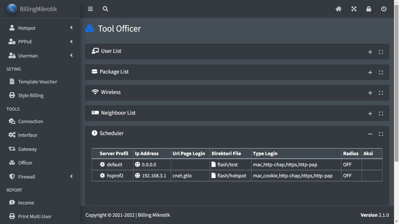 Fitur Utama Aplikasi :- Tersedia panel kontrol cek data user yang expired waktu limit, waktu jatuh tempo, jenis paket user, dll.
