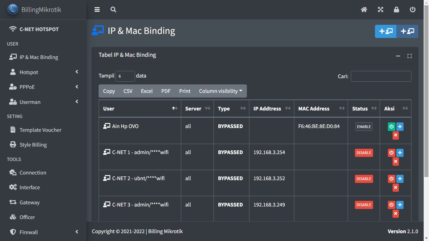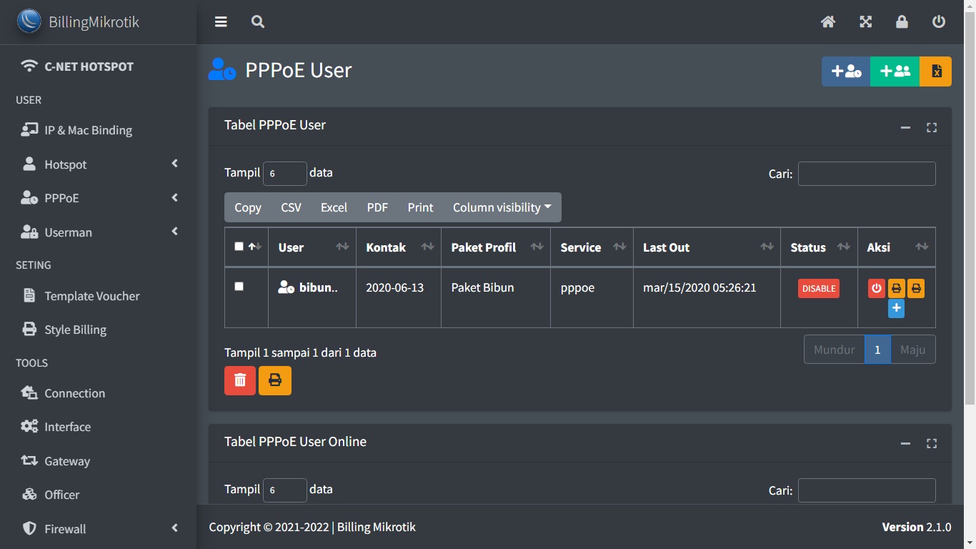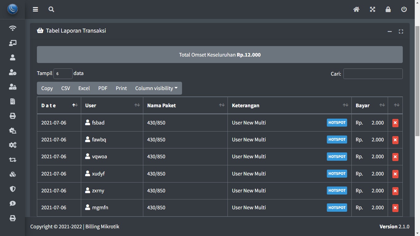 - Bisa untuk backup/export data User Hotspot + PPPoE ke Excel,PDF,CSV per Router Mikrotik.