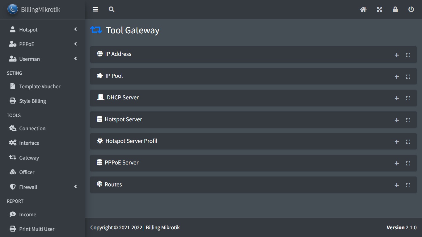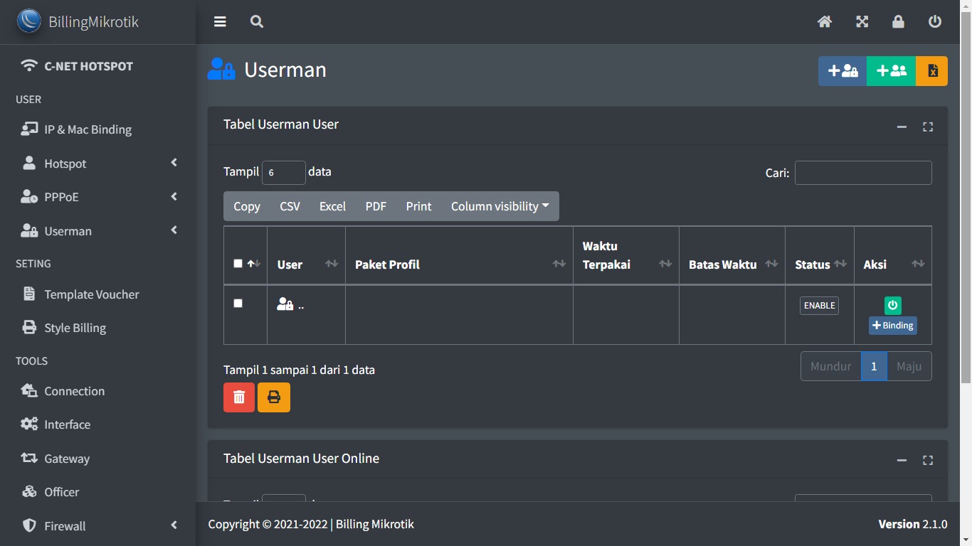- Manajemnt support untuk User Hotspot, User PPPoE, Userman, IP Binding.