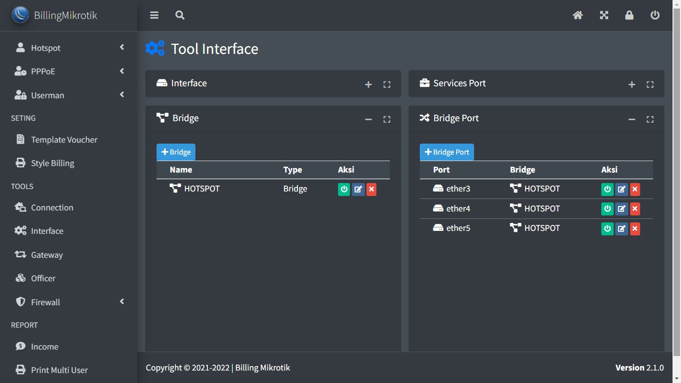 - Tersedia panel seting edit akun, password, nama hotspot billing mikrotik.