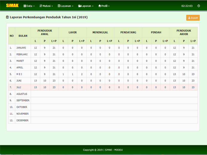 - Laporan perkembangan penduduk untuk 1 tahun.